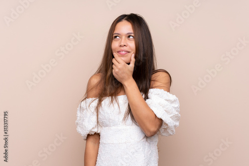 Young Brazilian girl over isolated background thinking an idea