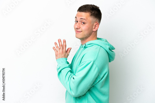 Young brazilian man isolated on white background scheming something