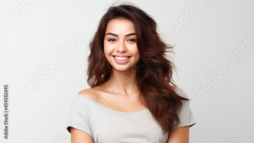 Young Brazilian woman cross arms isolated background looking to the side and smiling