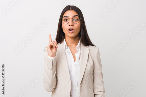 Young business arab woman isolated against a white background having some great idea, concept of creativity.
