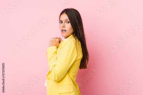 Young business woman scared and afraid.