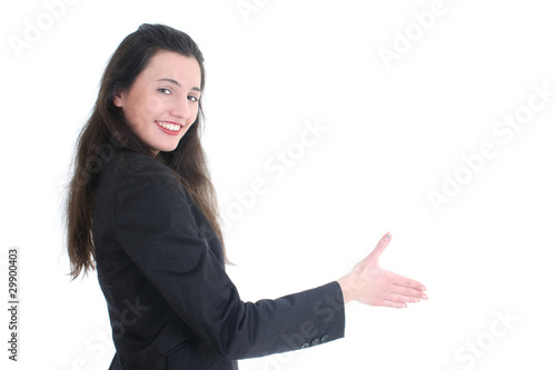 Young businesswoman offering hand for handshake