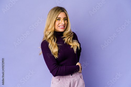 Young caucasian blonde woman having a liver pain, stomach ache.