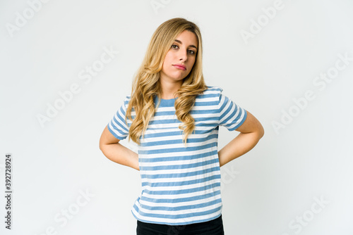 Young caucasian blonde woman sad, serious face, feeling miserable and displeased.