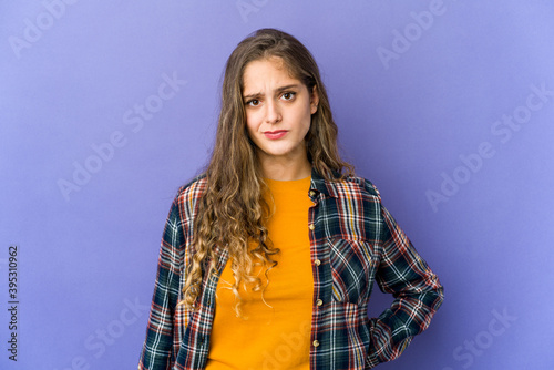 Young caucasian cute woman sad, serious face, feeling miserable and displeased.