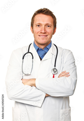 young caucasian doctor crossed arms isolated white background