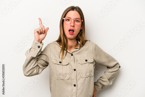 Young caucasian pregnant woman isolated on white background having an idea, inspiration concept.