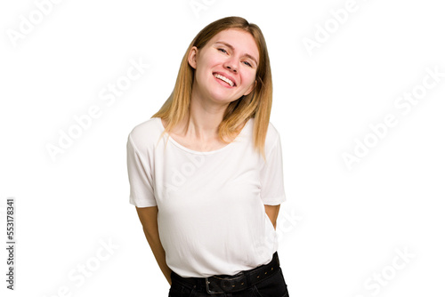 Young caucasian woman isolated happy, smiling and cheerful.