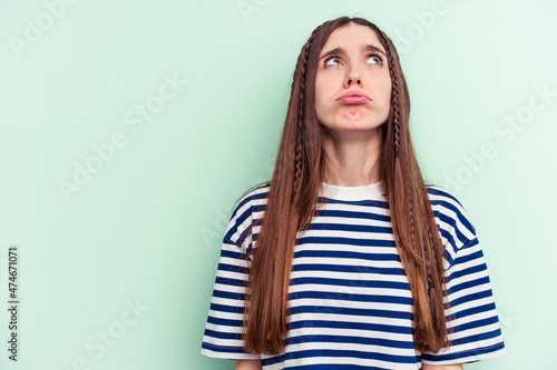 Young caucasian woman isolated on green background shouting very angry, rage concept, frustrated.