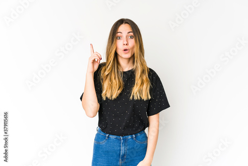Young caucasian woman isolated on white background having an idea, inspiration concept.
