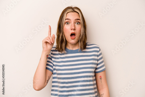 Young caucasian woman isolated on white background having an idea, inspiration concept.