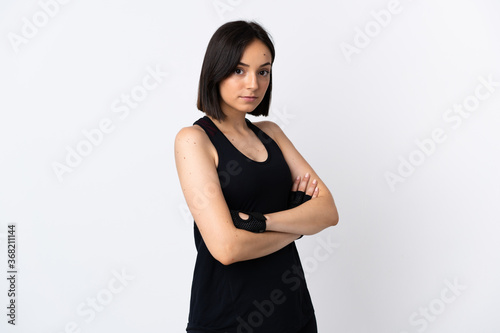 Young caucasian woman isolated on white background keeping the arms crossed