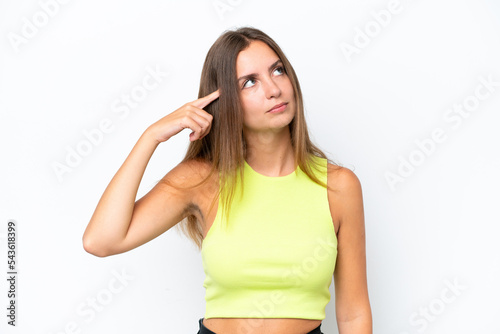 Young caucasian woman isolated on white background making the gesture of madness putting finger on the head