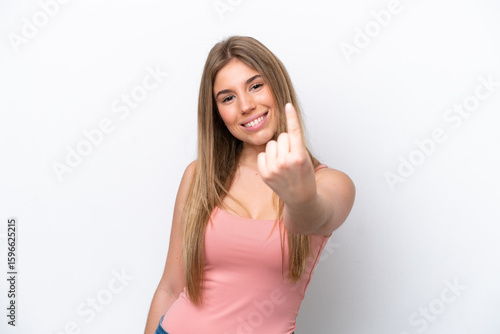 Young caucasian woman isolated on white bakcground doing coming gesture