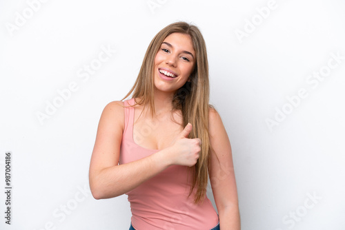 Young caucasian woman isolated on white bakcground giving a thumbs up gesture