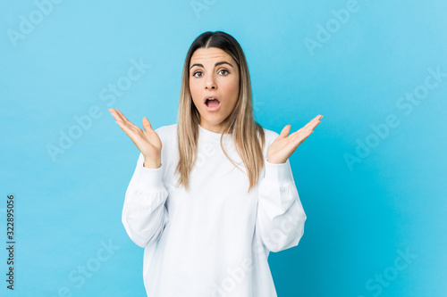 Young caucasian woman isolated surprised and shocked.