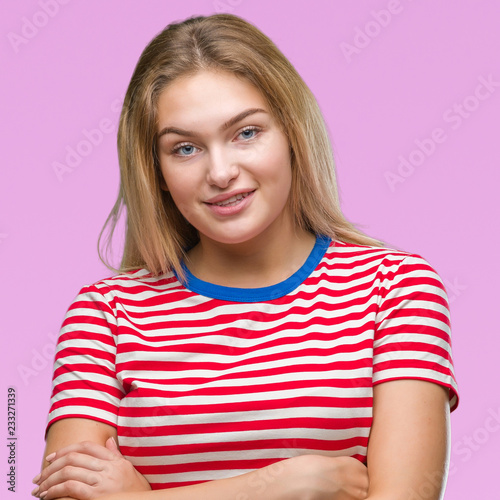 Young caucasian woman over isolated background happy face smiling with crossed arms looking at the camera. Positive person.