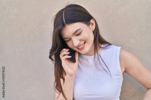 Young caucasian woman smiling confident talking on the smartphone over isolated white background