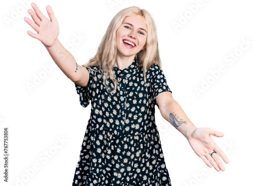 Young caucasian woman together looking at the camera smiling with open arms for hug. cheerful expression embracing happiness.