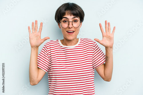 Young caucasian woman with a short hair cut isolated receiving a pleasant surprise, excited and raising hands.