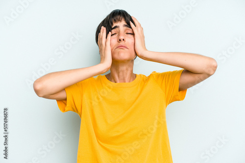Young caucasian woman with a short hair cut isolated whining and crying disconsolately.