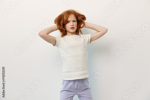 Young childhood person portrait kid caucasian background cute children girl expression little emotion face