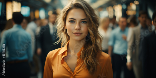Young Corporate Female Office Worker With Corporate Look in Office Background, Corporate Women, Generative AI.