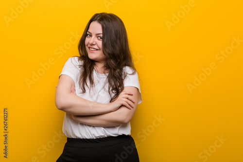 Young curvy plus size woman who feels confident, crossing arms with determination.