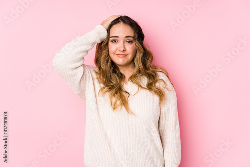 Young curvy woman posing in a pink background isolated being shocked, she has remembered important meeting.