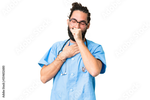Young doctor man over isolated chroma key background is suffering with cough and feeling bad