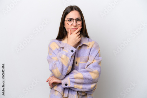 Young girl isolated on white background having doubts