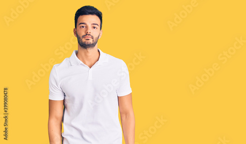 Young handsome hispanic man wearing casual clothes relaxed with serious expression on face. simple and natural looking at the camera.