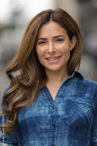 Young hispanic caucasian woman smile happy face portrait
