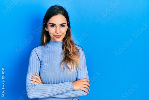 Young hispanic girl wearing casual clothes happy face smiling with crossed arms looking at the camera. positive person.