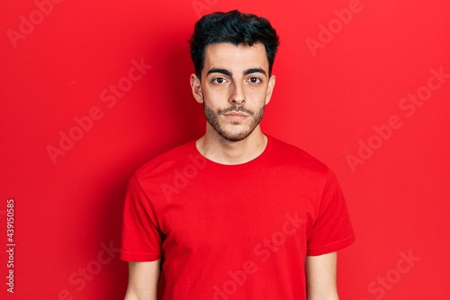 Young hispanic man wearing casual clothes with serious expression on face. simple and natural looking at the camera.