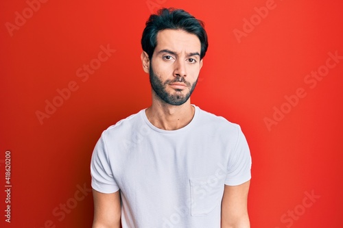 Young hispanic man wearing casual white tshirt depressed and worry for distress, crying angry and afraid. sad expression.