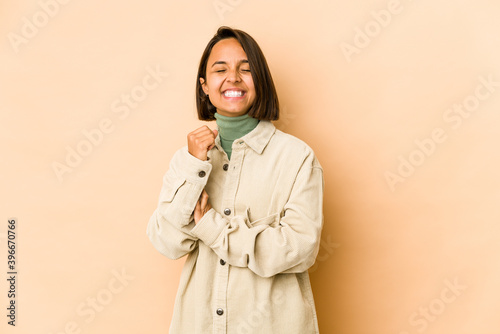Young hispanic woman isolated celebrating a victory, passion and enthusiasm, happy expression.