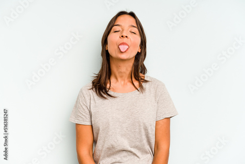 Young hispanic woman isolated on blue background with fingers on lips keeping a secret.