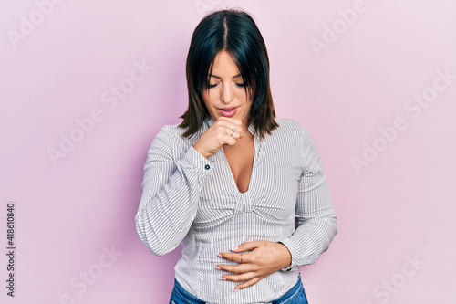 Young hispanic woman wearing casual clothes feeling unwell and coughing as symptom for cold or bronchitis. health care concept.