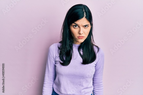 Young hispanic woman wearing casual clothes skeptic and nervous, frowning upset because of problem. negative person.