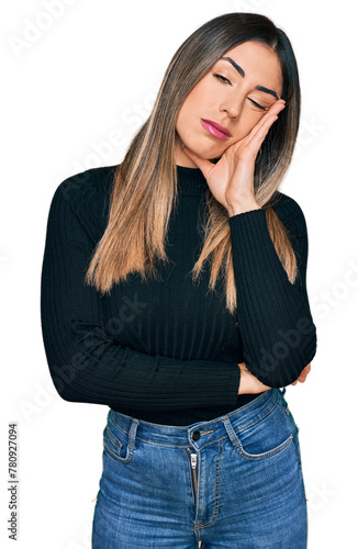 Young hispanic woman wearing casual clothes thinking looking tired and bored with depression problems with crossed arms.