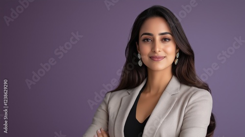 young indian business woman standing on purple background