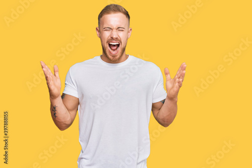 Young irish man wearing casual clothes celebrating mad and crazy for success with arms raised and closed eyes screaming excited. winner concept