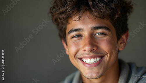 Young latino boy kid teen tween smiling isolated studio portrait with blank background