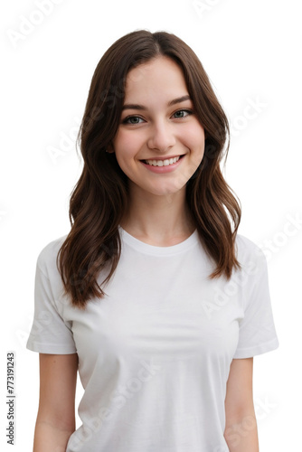 Young lesbian wearing a white t-shirt, smiling and looking at the camera, Happiness concept, isolated, transparent background, no background. PNG.