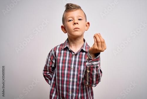 Young little caucasian kid with blue eyes wearing elegant shirt standing over isolated background Doing Italian gesture with hand and fingers confident expression