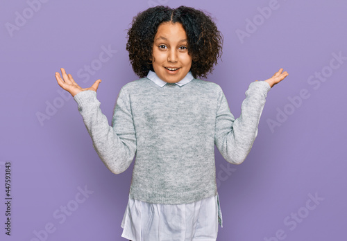 Young little girl with afro hair wearing casual clothes celebrating crazy and amazed for success with arms raised and open eyes screaming excited. winner concept