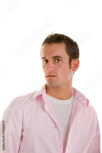 Young Man in Pink Shirt Head Turned Eyes Forward