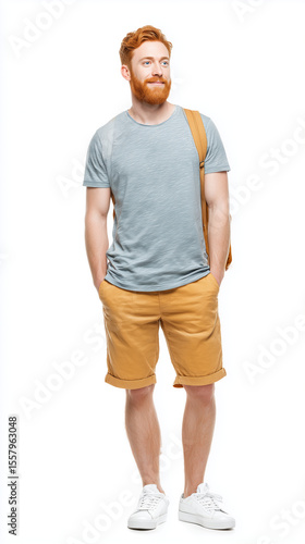 Young Man in Vibrant Summer Outfit —Stylish Fashion on White Background,