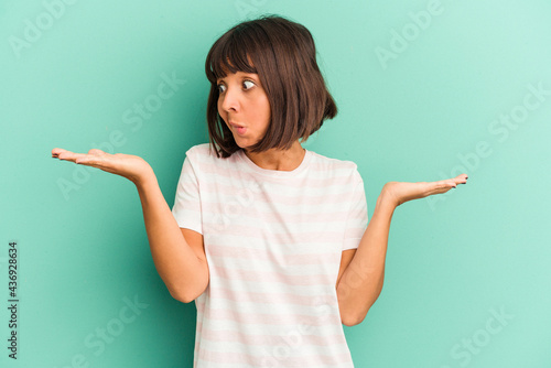 Young mixed race woman isolated on blue background keeping a secret or asking for silence.
